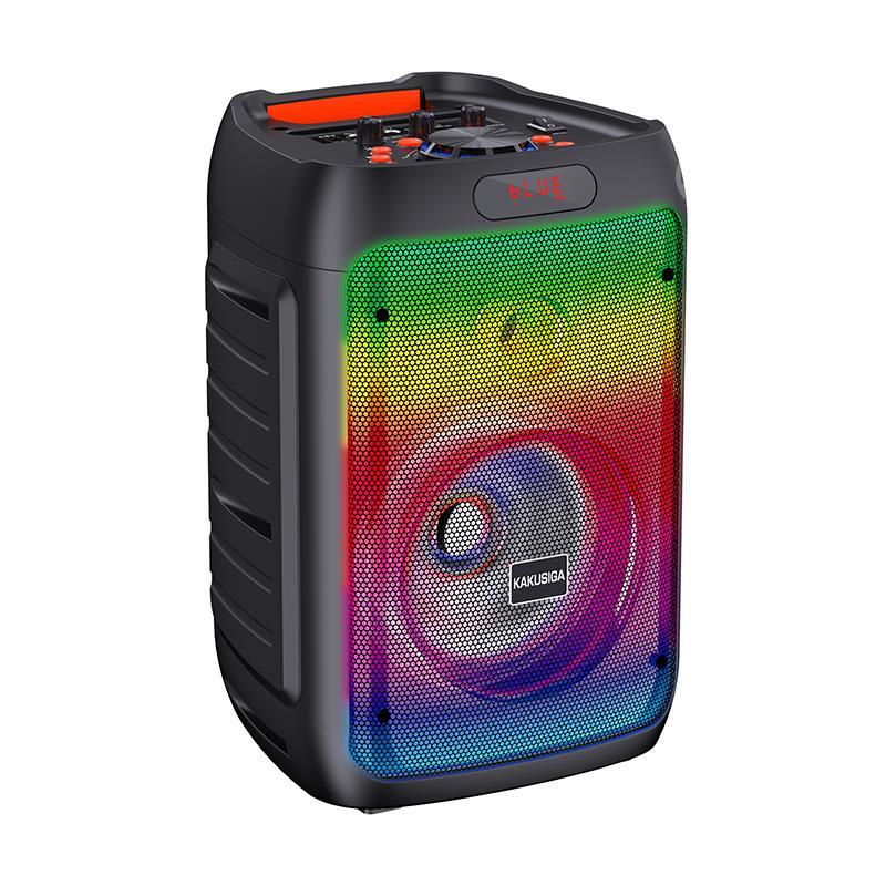 Rechargeable portable speaker 8" 20W Bluetooth/USB LED light Characteristics Model: KSC-829 Bluetooth Version: 5.0 Chip: Zhongke Lanxun Battery capacity: 3600mAh Charging time: about 4 hours Speaker: 8 inch full frequency Power: 20W*1 Equipped with karaoke microphone and remote control Accessories included Remote control Wired microphone Audio inputs USB port SD card input AUX 3.5mm AUX 6.35mm for microphone Bluetooth Audio controls Knob for general volume Microphone volume control knob