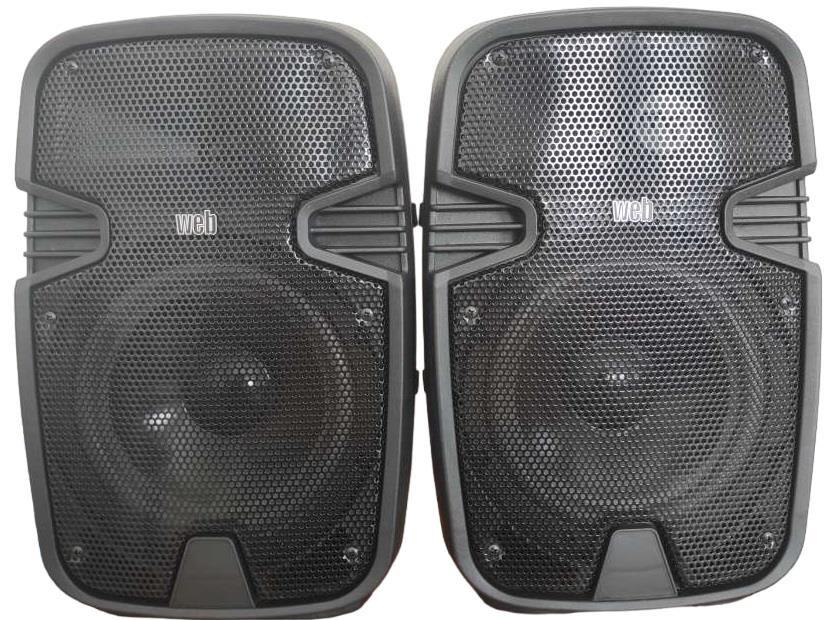Pair of 8" Bluetooth/USB/SD/Radio amplified speakers Characteristics 8" woofer 2 6.3mm jack microphone inputs Bass, treble, ECHO, volume, MIC volume adjustment Stereo RCA AUX input Power cable supplied Scratch-resistant ABS case Black colour Insert for stand Side handles Dimensions: 25x20x39cm
