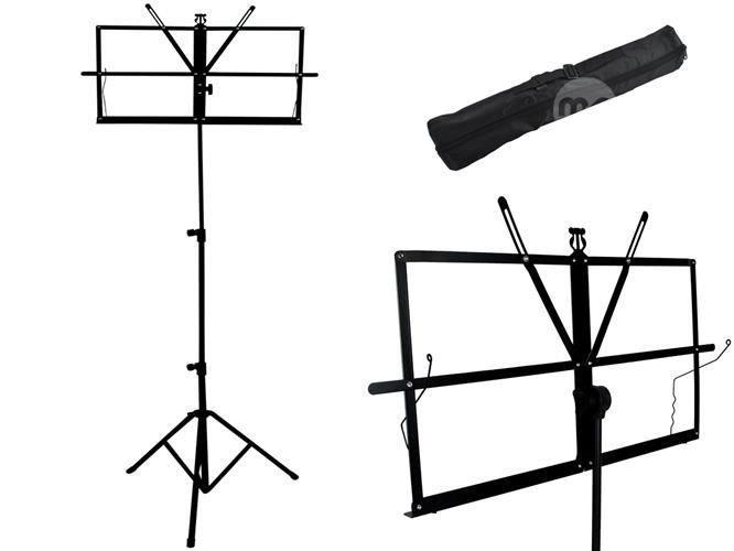Folding music stand with tripod base Main features Black colour Material: metal Fully resealable for easy transport Height (3 levels): 65-90-123cm 3 knobs for inclination adjustment and locking / unlocking of the rods Music stand dimensions (width / height): 46.5x29 cm Weight: 780g Ean code: 5901785361803 Supplier code: 00001307 Package Contents music stand Practical case with extendable handle and zip closure