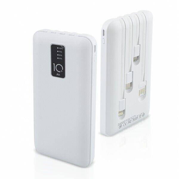 Powerbank 8800mAh white USB/microUSB/type C/Lightning The 88000mAh Power Bank has 4 outputs, making it a universal portable charger. Characteristics Supplier code: LE-314 EAN Code: 6920160003144 Battery capacity: 8800mAh Integrated smartphone cables: 1x USB - 1x USB type C - 1x USB Lightning - 1x microUSB 1 USB port White color Cable for charging the powerbank included