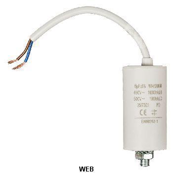 Condensador + cable 8.0uf / 450V Features Capacidad: 8.0 uF Voltaje: 450 V Dimensiones: Ø 35 x 69 mm Longitud del cable: 250 mm EAN 5412810231782 W9-11208N