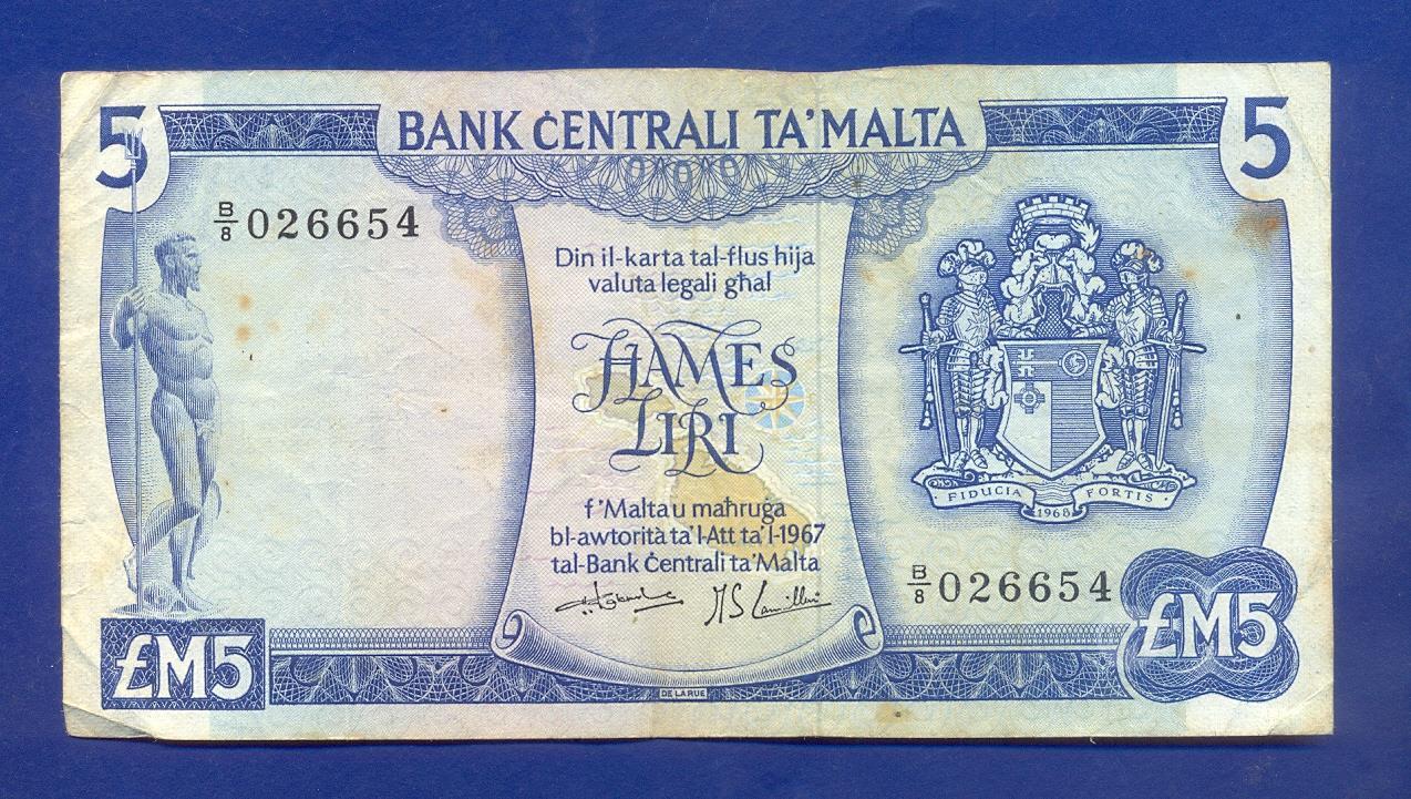 MALTA 1973 HAMES LIRI SIGNED BY DEGABRIELE / CAMILLERI IN FINE CONDITION.