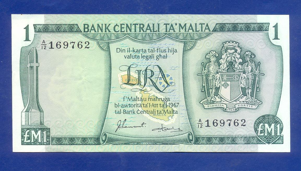 MALTA 1973 1 LIRA SIGNED SAMMUT / DEGABRIELE IN VERY FINE CONDITION.