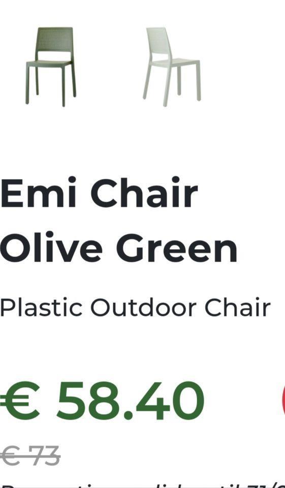 4 solid plastic chairs for outdoors, 2 green and 2 white chairs €120 for all 4