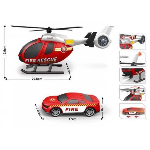Helicopter + Fire Department Car Set