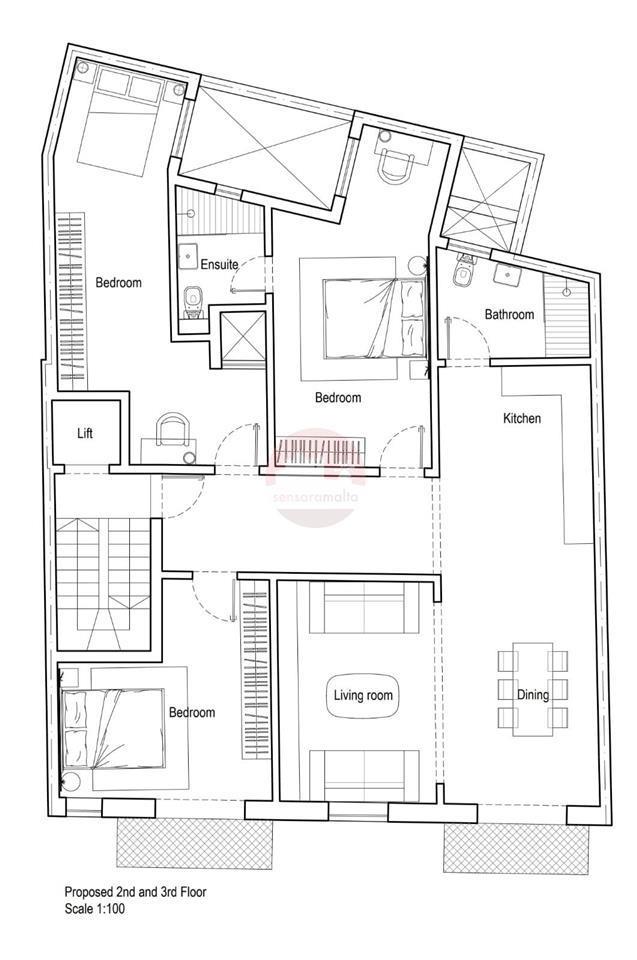 Fgura – Squarish 3-Bedroom Apartment (On Plan)