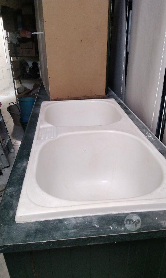 Bank tal kcina tal aluminium u cupboard mieghu.Kundizzjoni tajba hafna