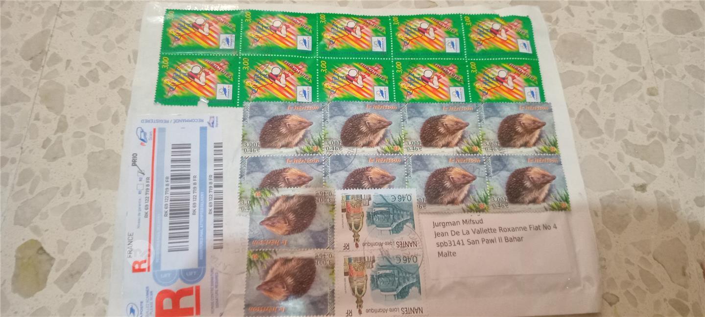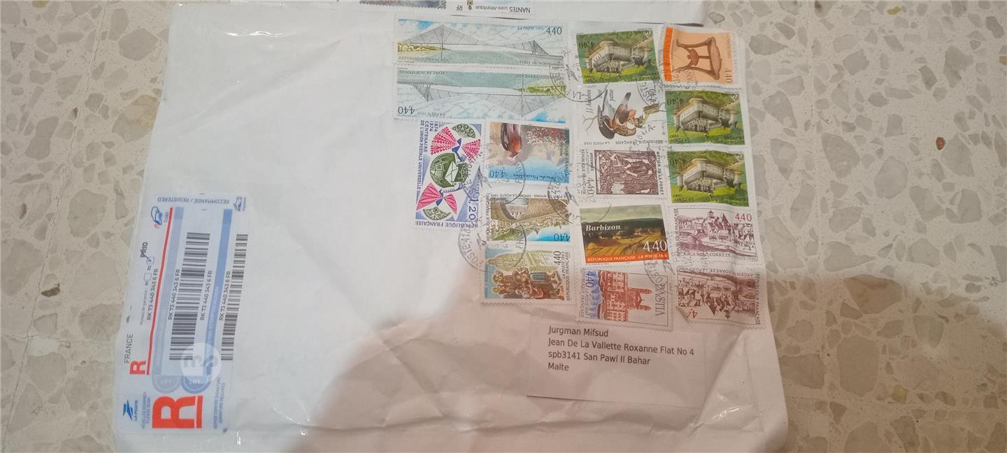 Registered stamped envelopes France to Malta 4.00 Euro each