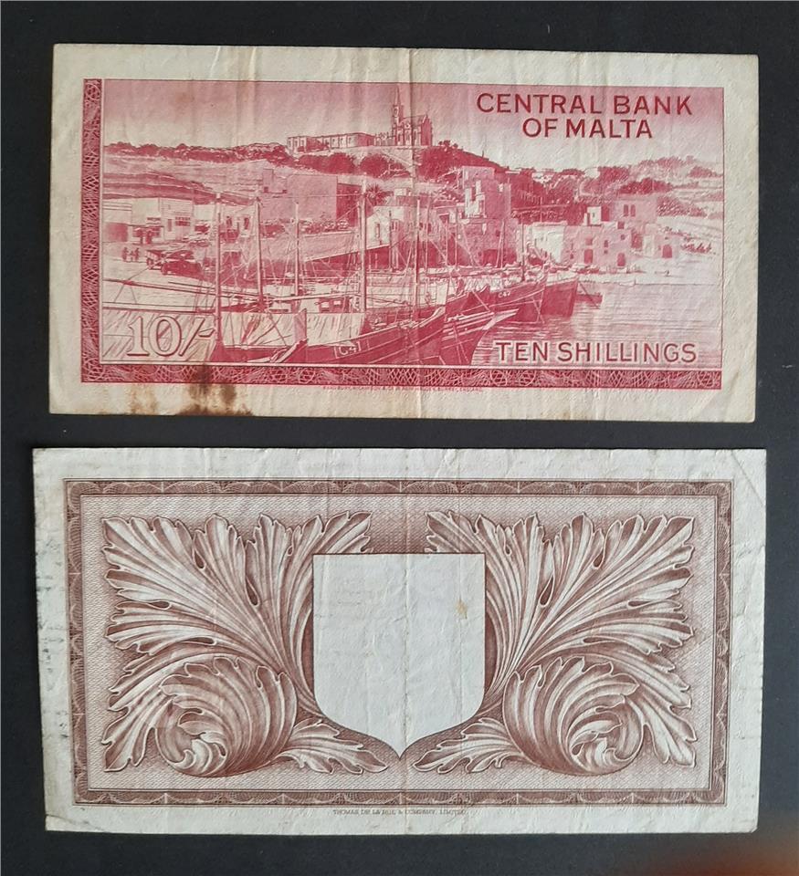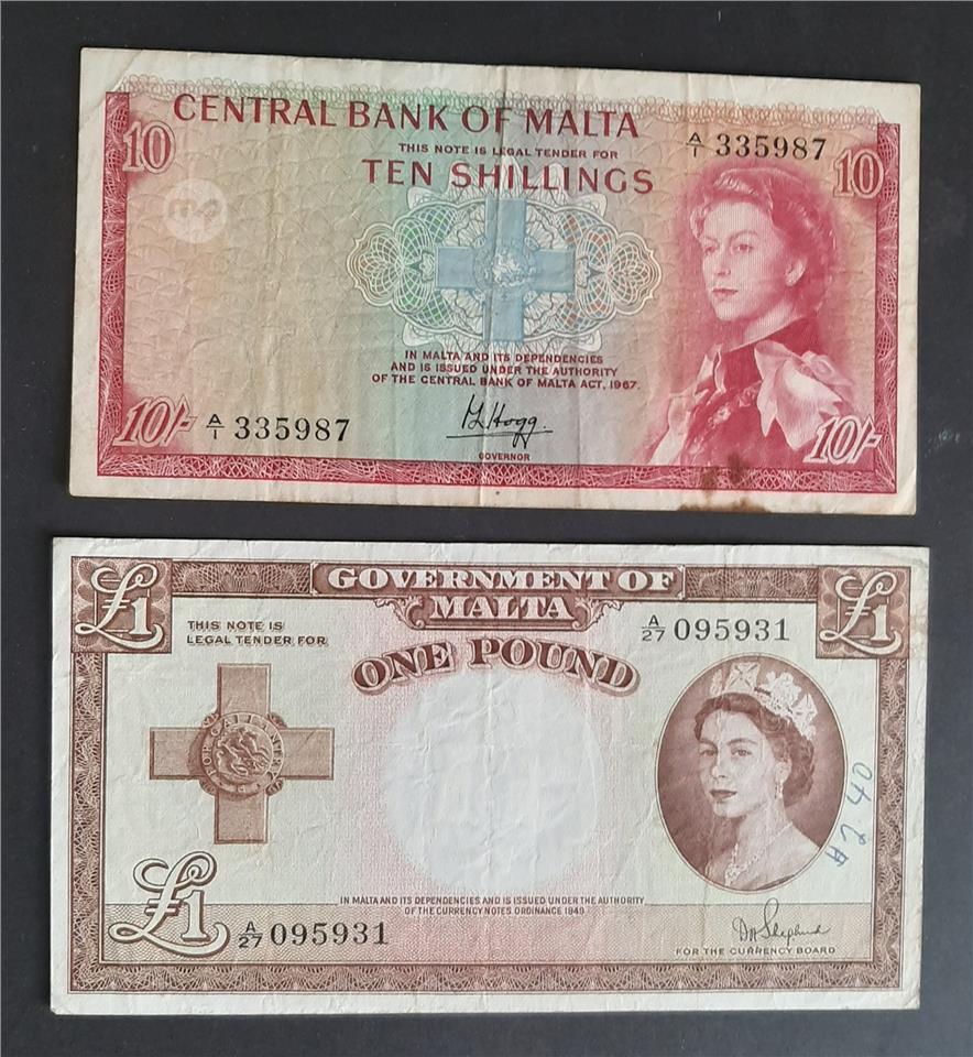 2 MALTA - ELIZABETH II BANKNOTE - TEN SHILLINGS and ONE POUND