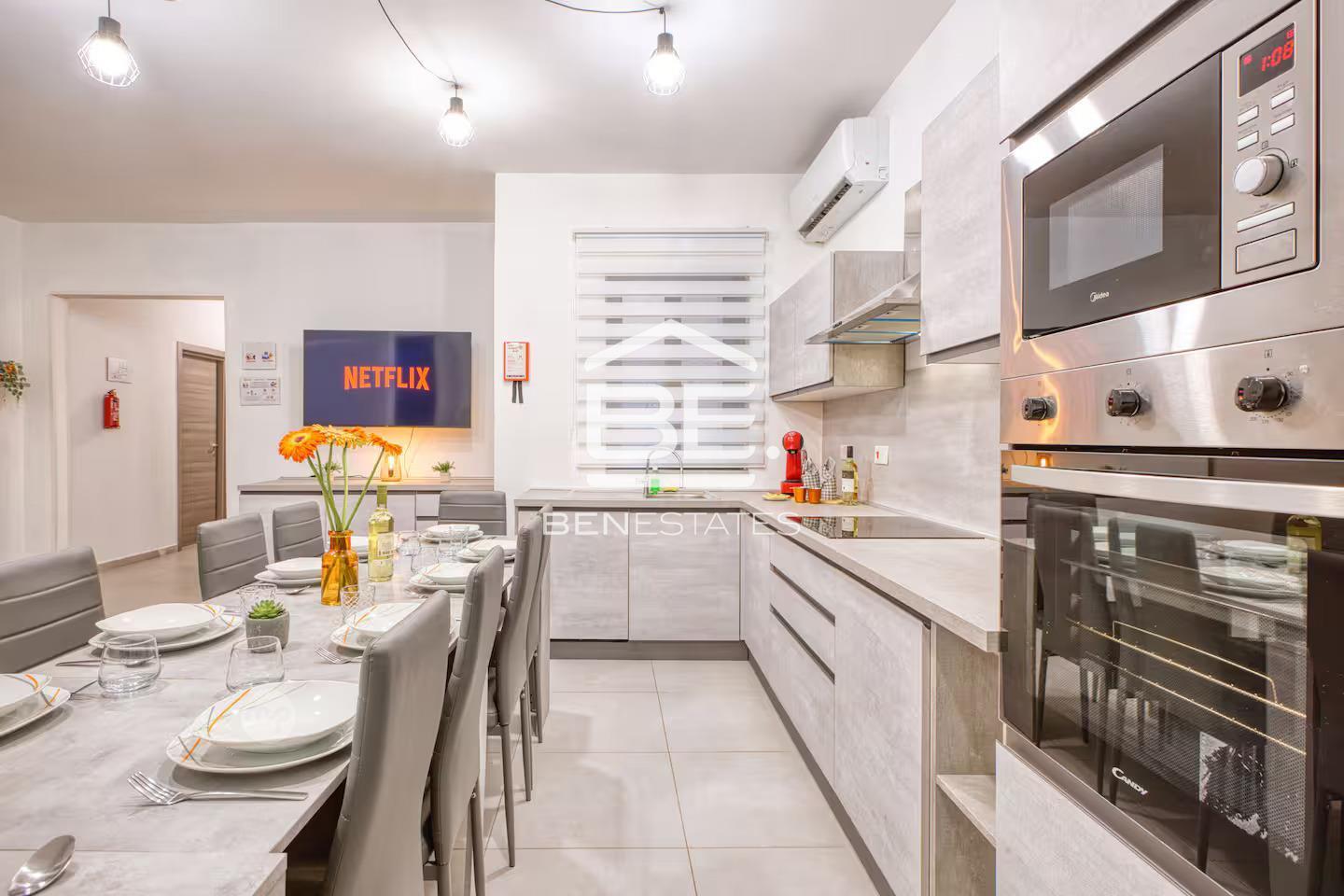 SLIEMA - The property features a modern, open-plan kitchen, living and dining area, four double bedrooms, and two bathrooms, offering ample space and comfort. Bright and airy throughout, this apartment is designed for practical living in one of Malta’s most desirable locations. Situated in the bustling center of Sliema, you’ll enjoy immediate access to shops, restaurants, cafés, the seafront, and public transport. Its smart layout and generous proportions make it ideal as a family home or a valuable rental investment.