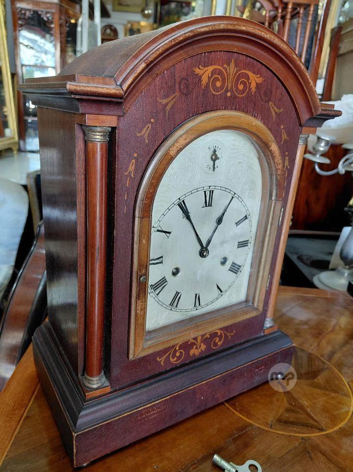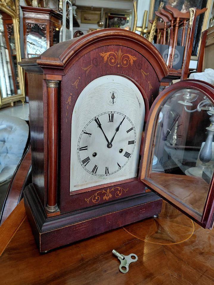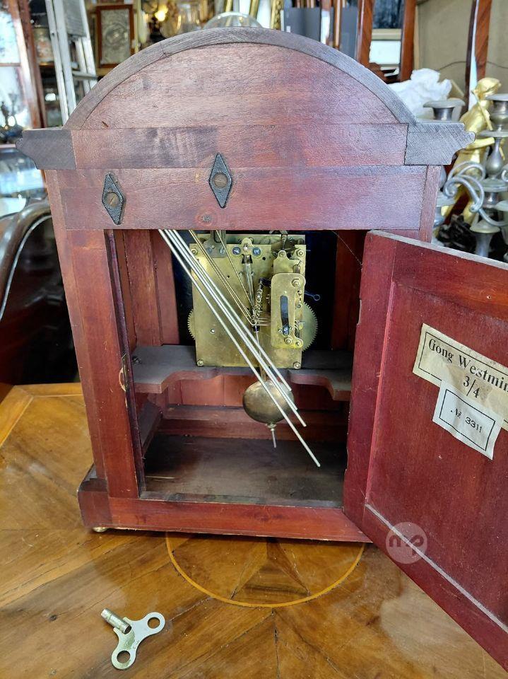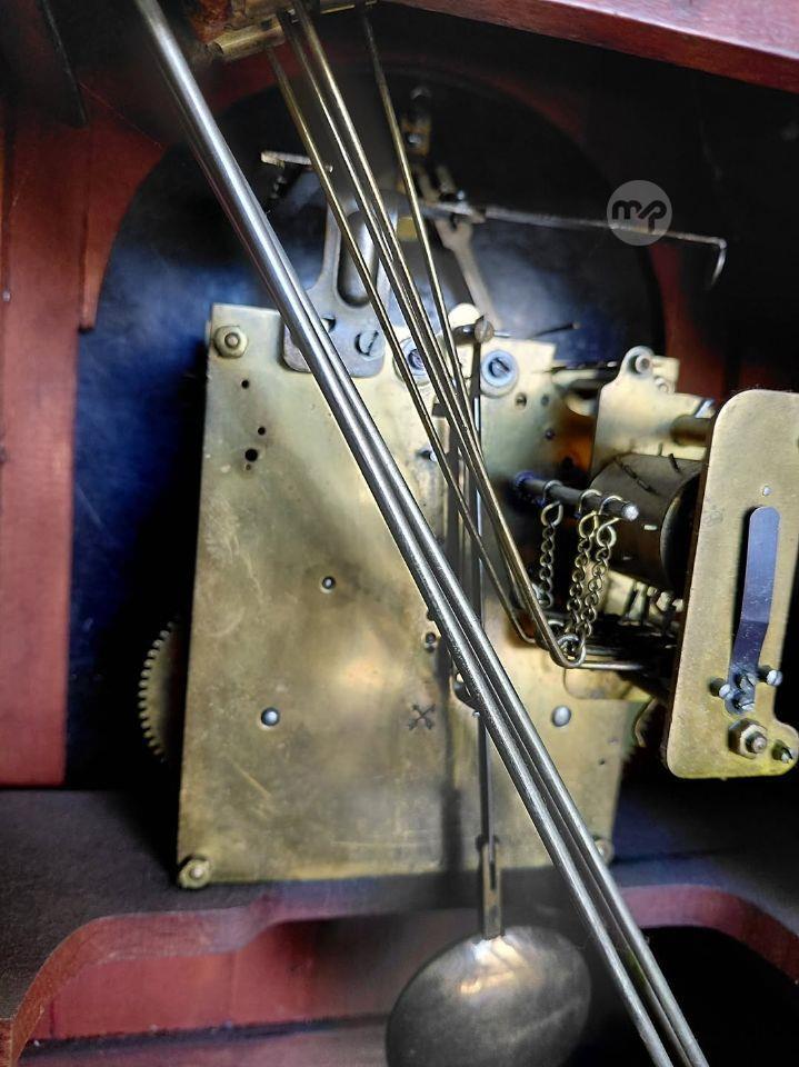 A Beautiful wooden inlay clock case Showing a Westminster gong clock In good w