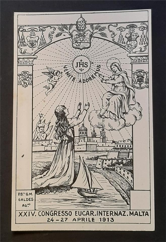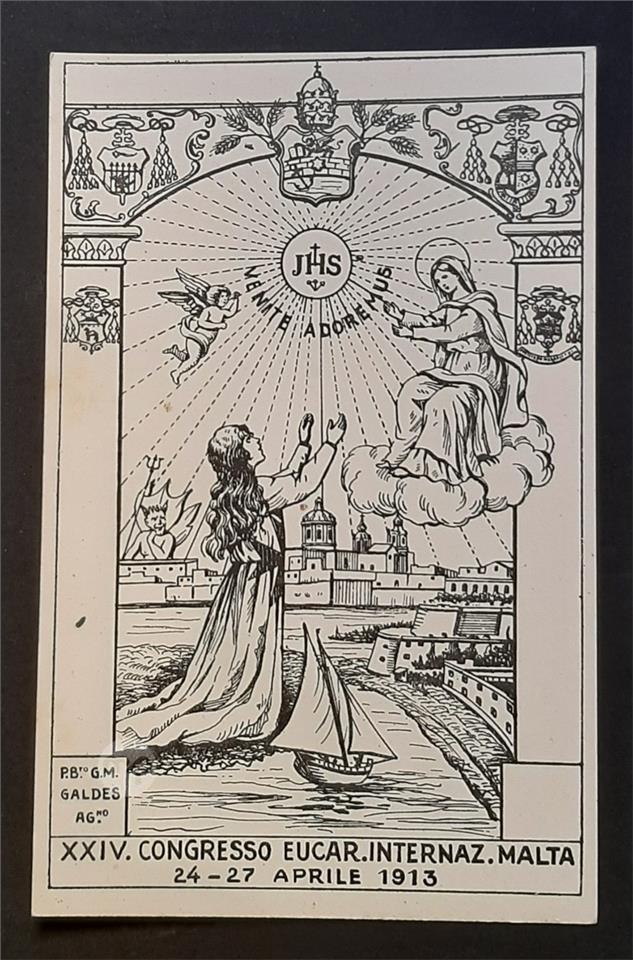 ANTIQUE POSTCARD - XXIV INTERNATIONAL EUCHARISTIC CONGRESS MALTA 1913