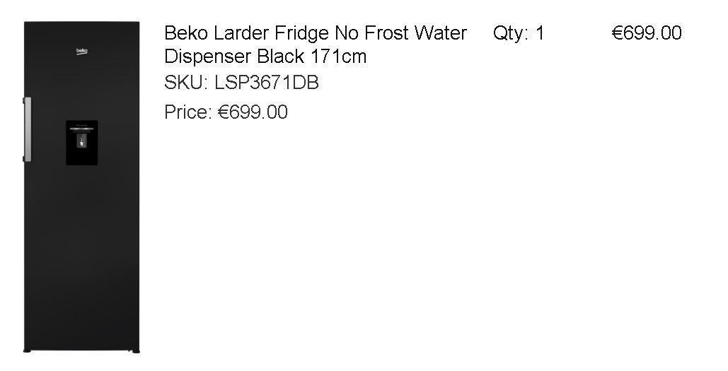 Freestanding Tall Frost Free Freezer with Freezer Guard and matching Beko Larder Fridge No Frost Water Dispenser Black 171Cm. Model Lsp3671Db