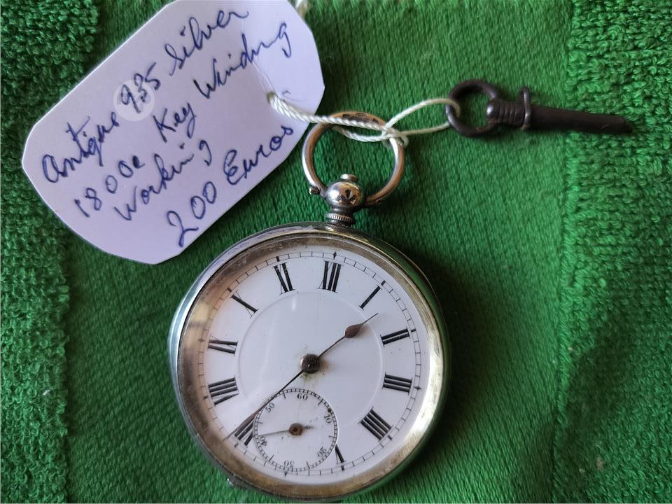 Antique Silver 935 Pocket Watch 1800s Key Winding Working