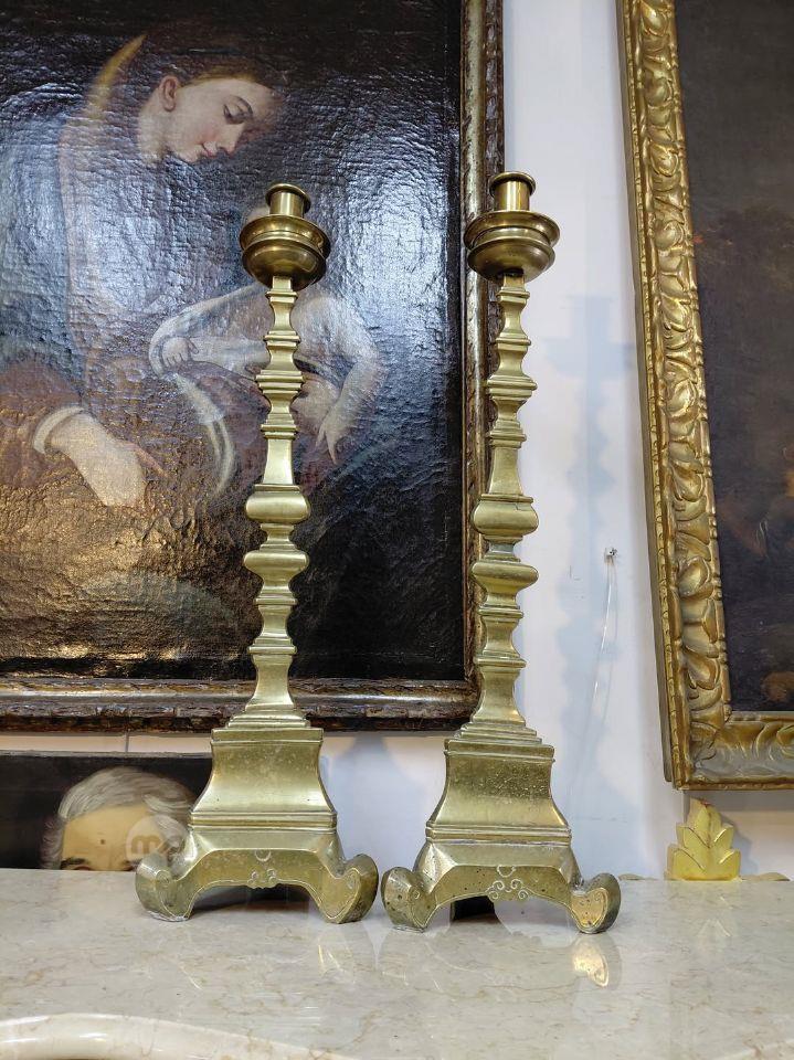 Pair large And Antique Solid Brass Ecclesiastic Candelabras Measures 70 c