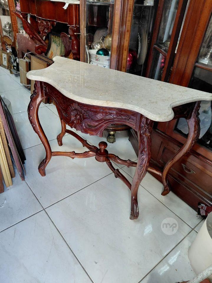 An Antique Carved wood Console with later cream colour Marble top Complete with