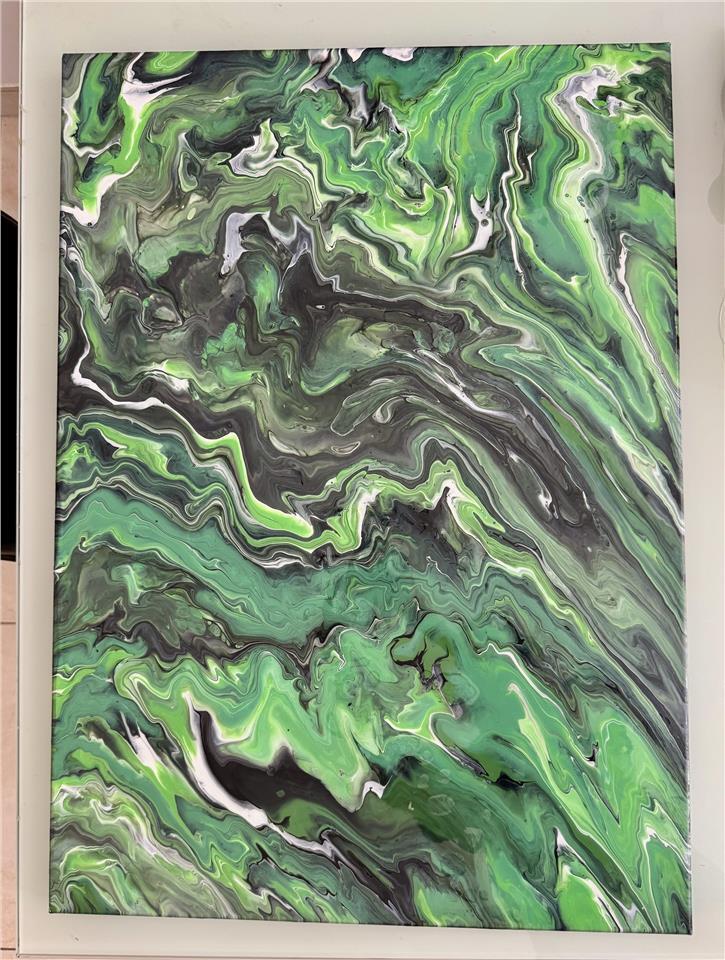 Large abstract acrylic pouring canvas covered in epoxy resin