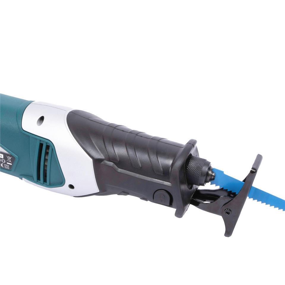 The Reciprocating Saw is used for cutting wood, pipes, profiles, etc. Key-less saw blade replacement.