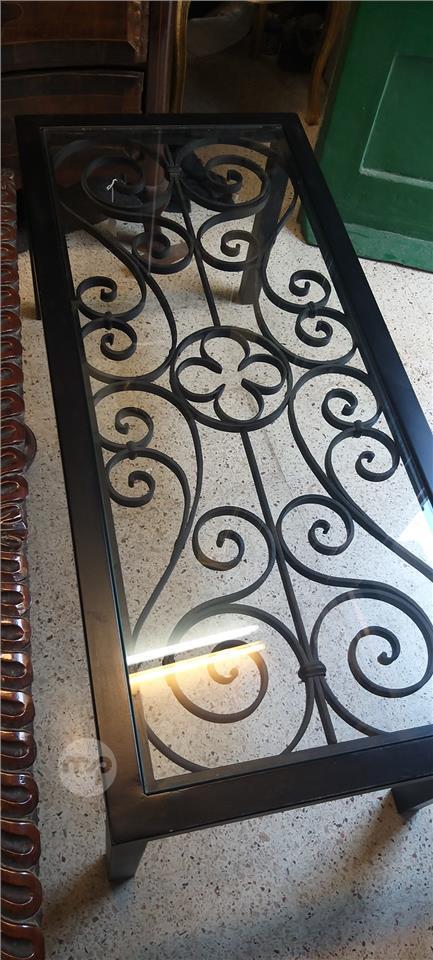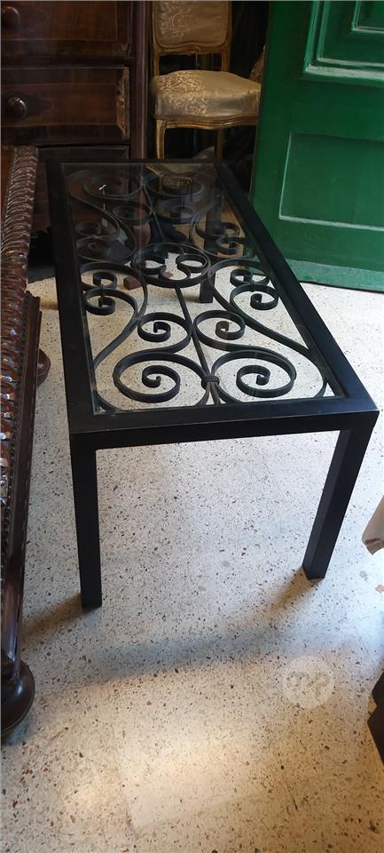 A wrought iron low table with glass top Price of 120 euros 99456526