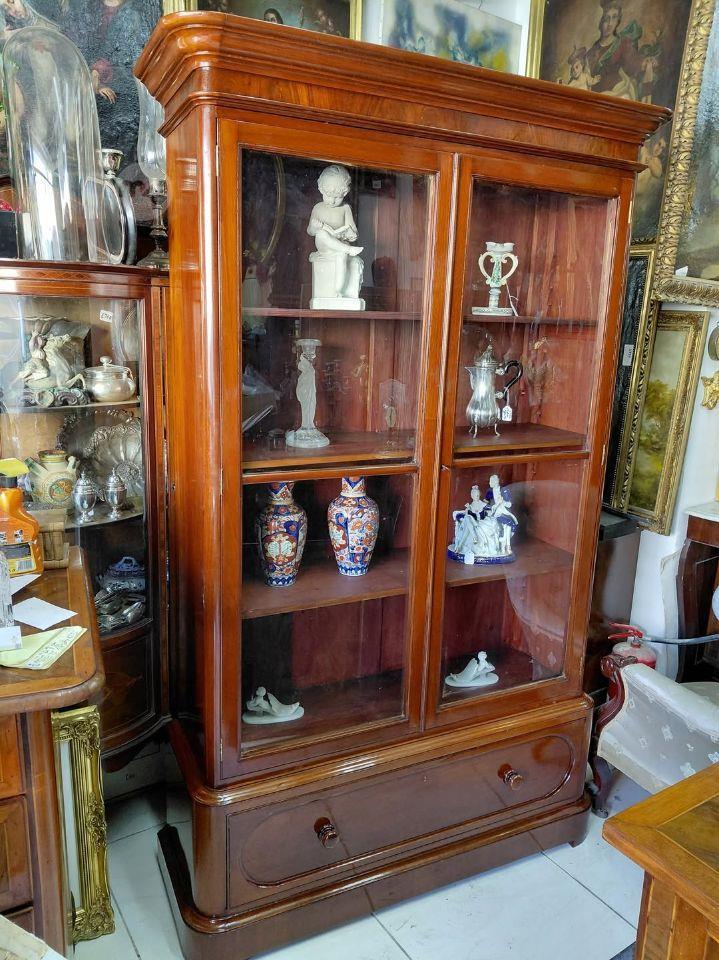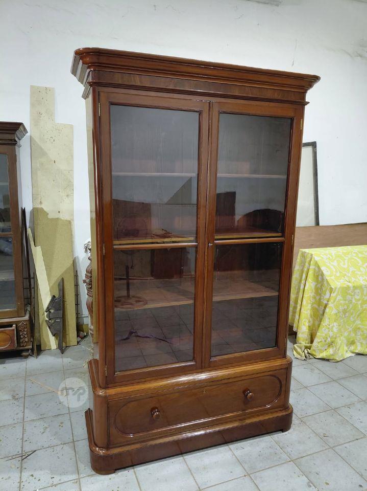 An Antique 19th century SOLID WOOD MAHOGANY TWO DOOR BOOKCASE Has a large bas