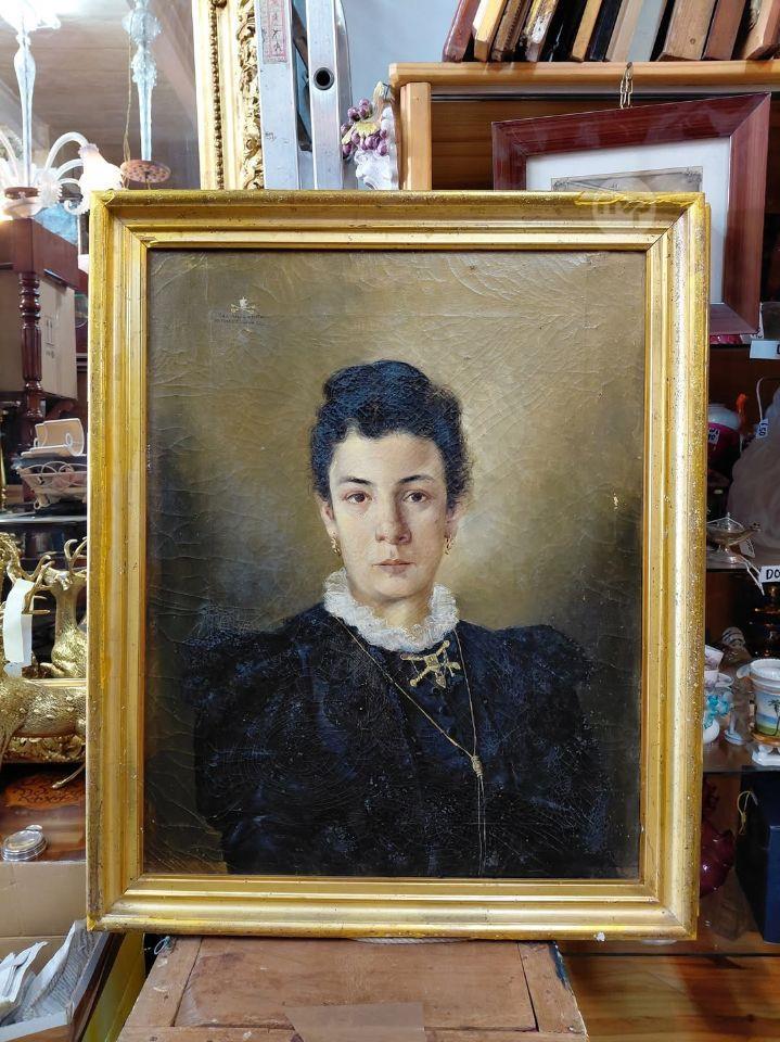 Pair Antique Portrait paintings of a lady and gentleman Mounted on gilt wood fr