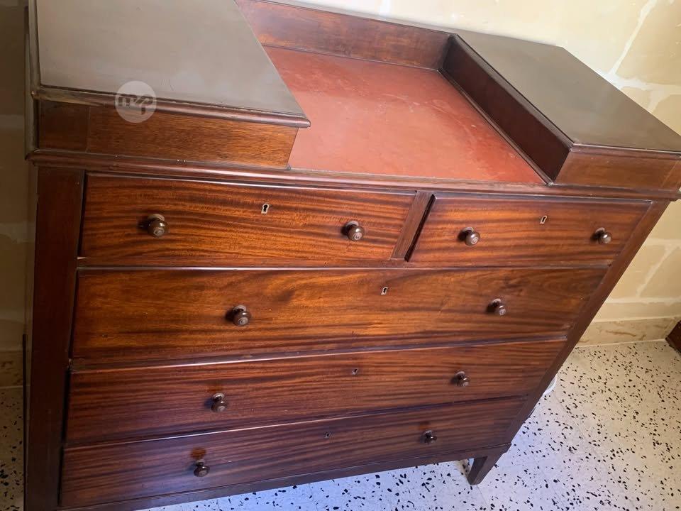 Antique Mahogany Chest of Drawers with Raised Sides – Five drawers + two top compartments – €250