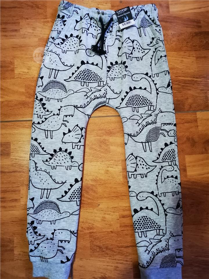 Two brand new boys joggers still with tags. One grey with dinosaurs and one lined navy blue. Both together for only €15.00 or €10.00 each if sold separately