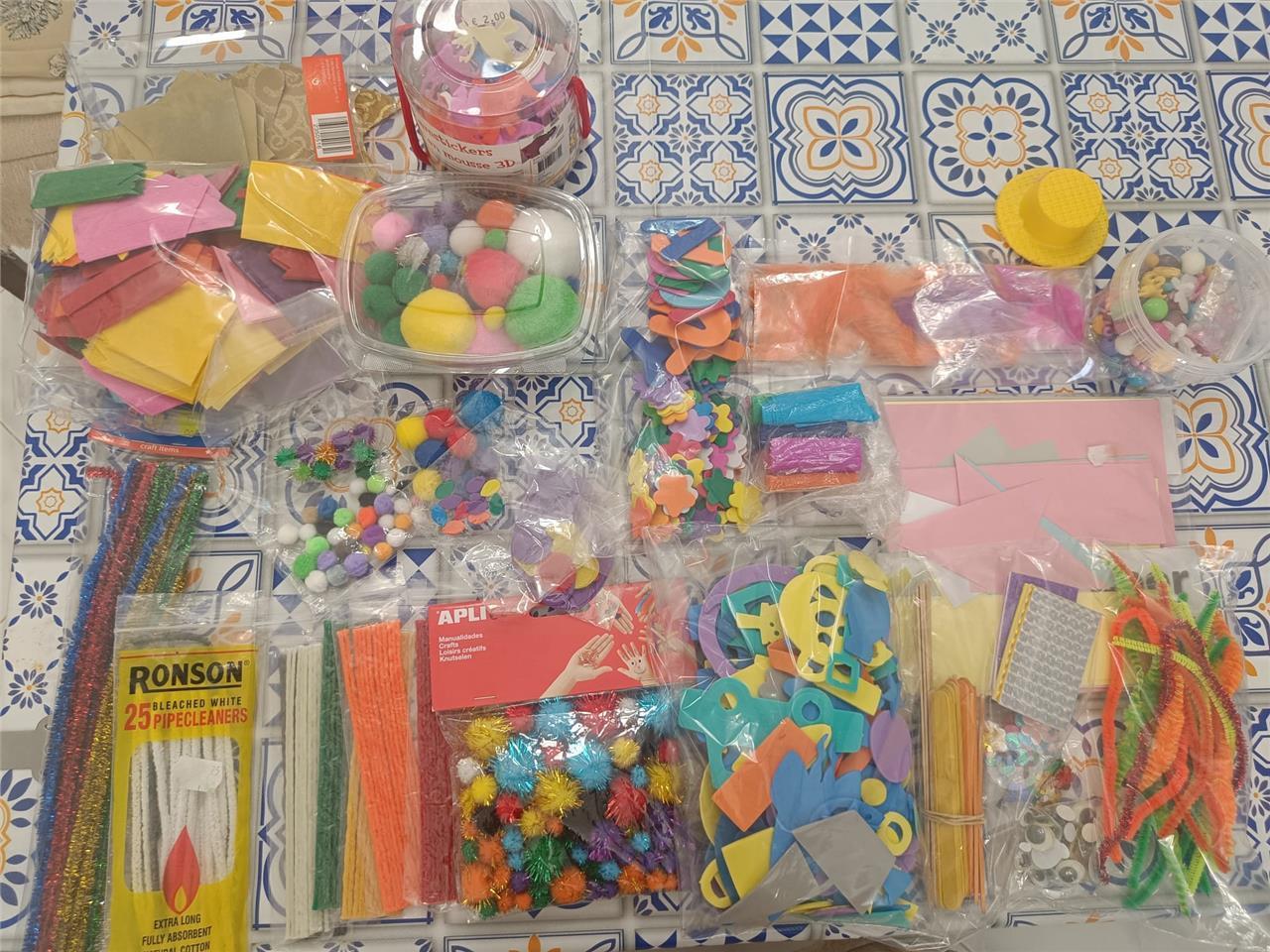 Various packets of NEW, unopened craft sets, and other opened only to use a few loose items.
