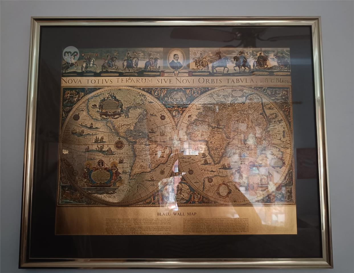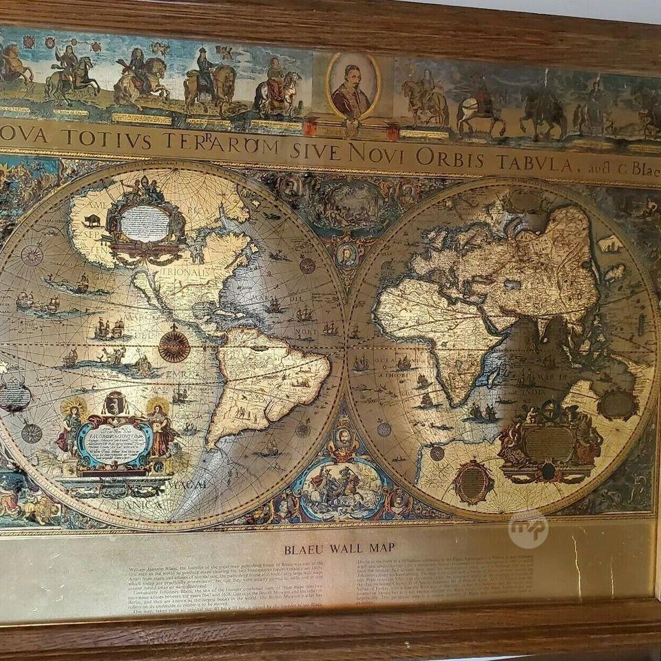 Gold Foil Blaeu Wall Map of Old and New World Frame