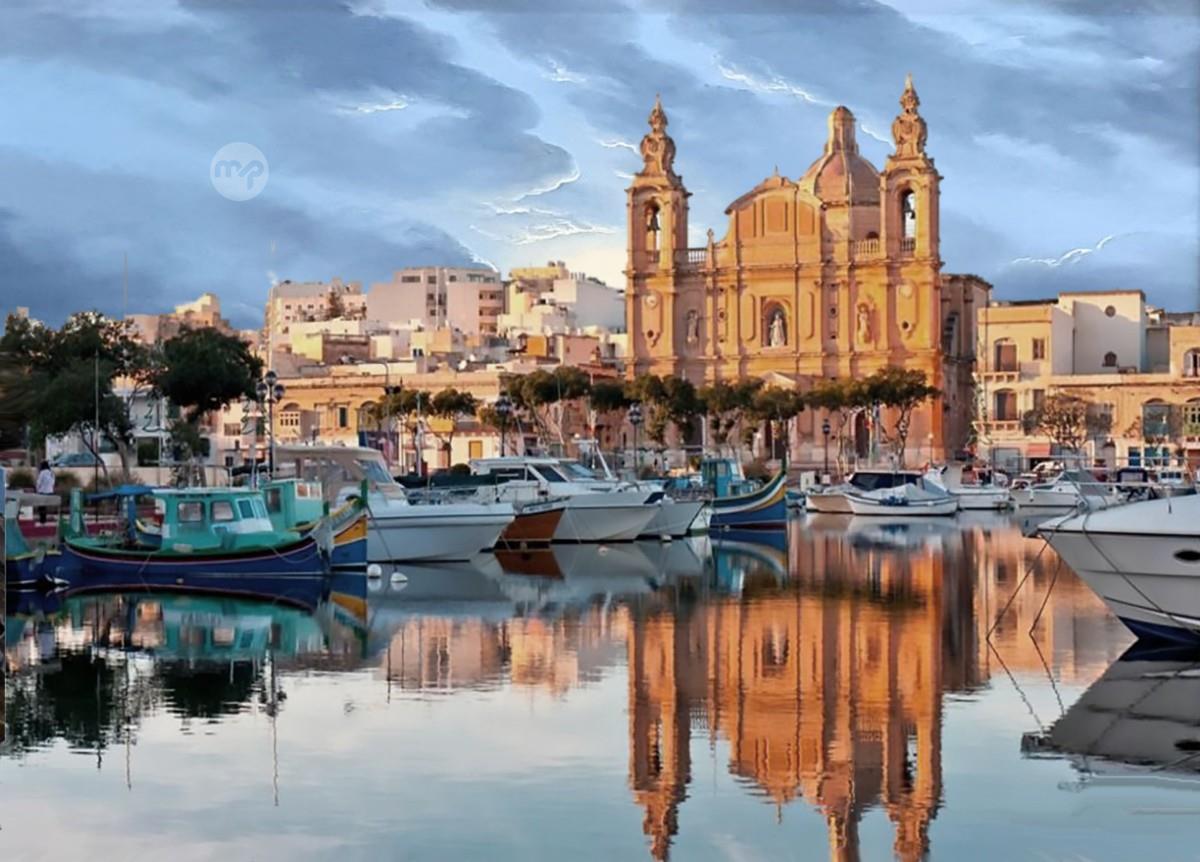 MSIDA REFLECTIONS MALTA---- ORIGINAL HAND PAINTING OIL ON CANVAS 70X50