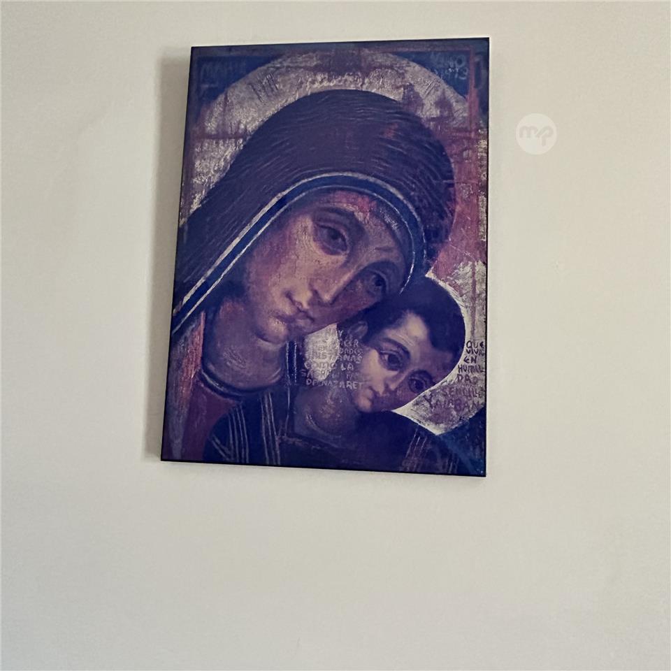 Selection of wall hanging and free standing religious images being offered for sale for the house and home or for collectable religious interest