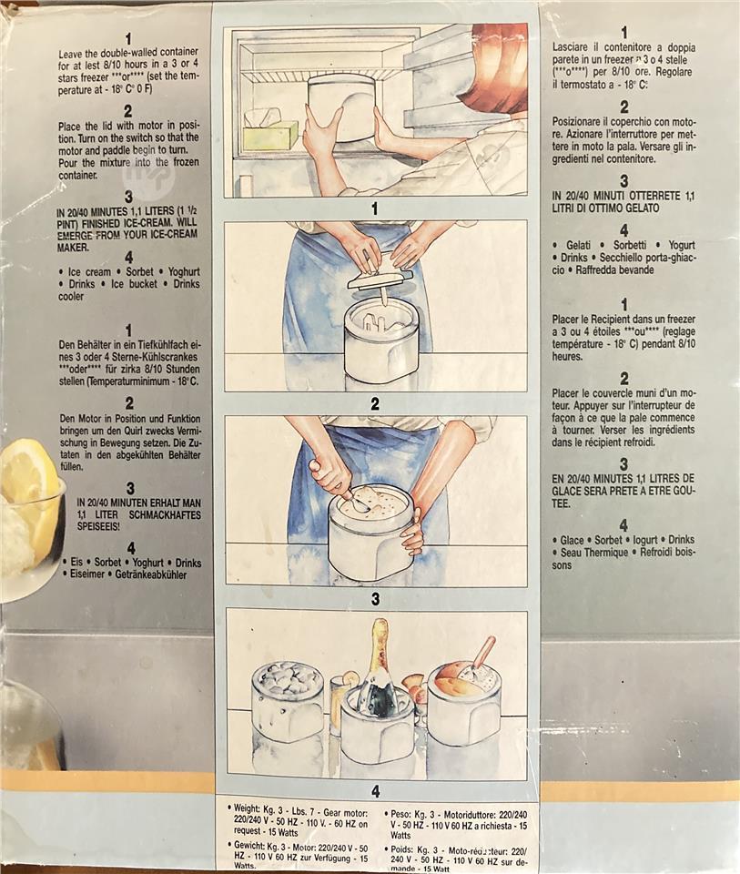 Electric Ice cream maker - makes great ice creams sorbets quickly and efficiently arifht at your own home and kitchen 15 euros