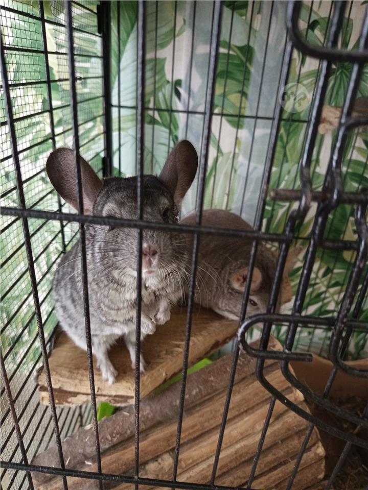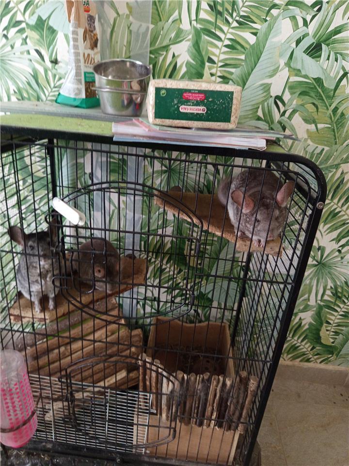 3 chinchilals- 2 are 2.5 years. Old (1 male and 1 female) and another female10 months. To go all together cage and accessories included