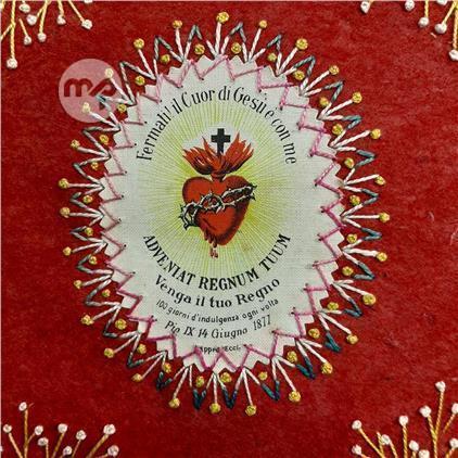 LAPTU ANTIK - LARGE ANTIQUE EMBROIDERED SACRED HEART OF JESUS SCAPULAR