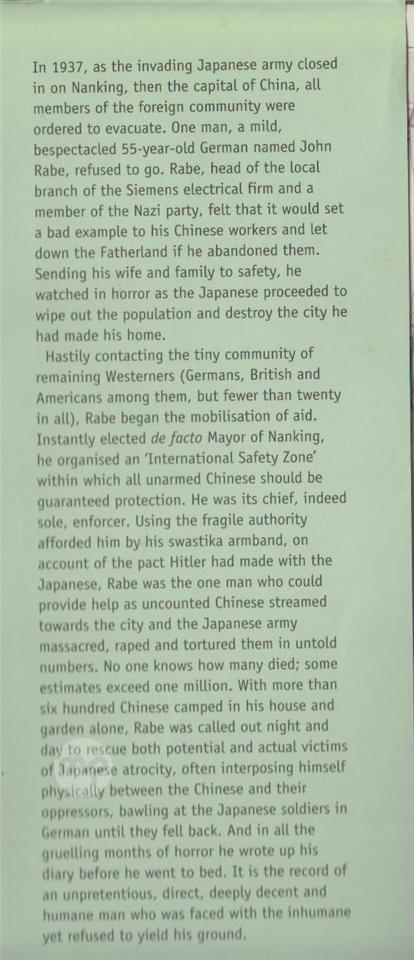 The Good German of Nanking. The Diaries of John Rabe - editor Erwin Wickert.