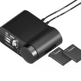 Hot-swap between 2 batteries for unlimited playing time