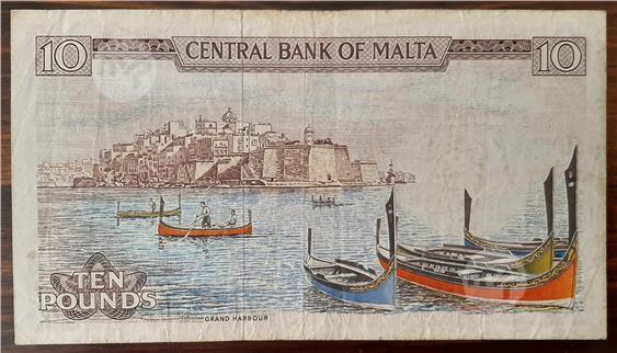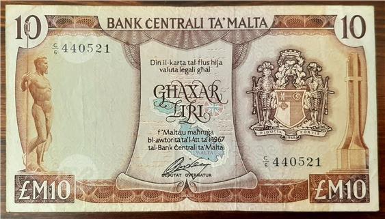 BANK CENTRALI TA' MALTA - GHAXAR LIRI (Lm10) BANKNOTE signed LINO SPITERI HARD TO FIND
