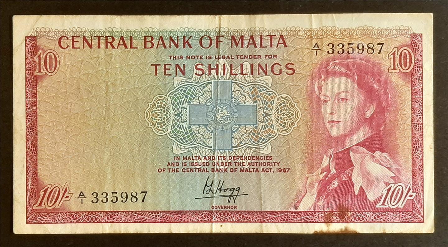 CENTRAL BANK OF MALTA - ELIZABETH II TEN SHILLINGS BANKNOTE signed HOGG