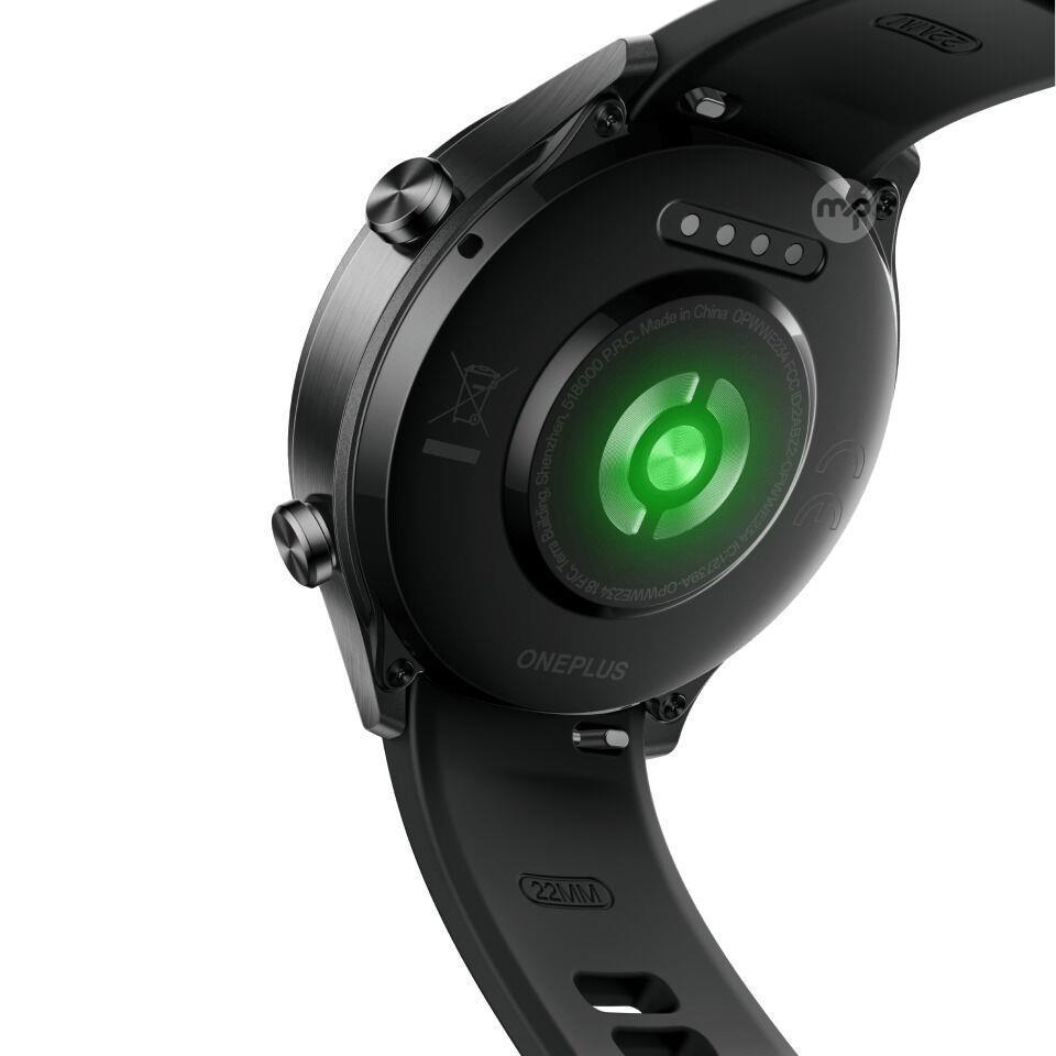 The device is constructed with an aluminum alloy chassis and a fluororubber strap with a stainless steel buckle, making it significantly lighter than its predecessor—weighing approximately 37g without the strap and 59g with it, compared to the Watch 2's 49g and 80g respectively.