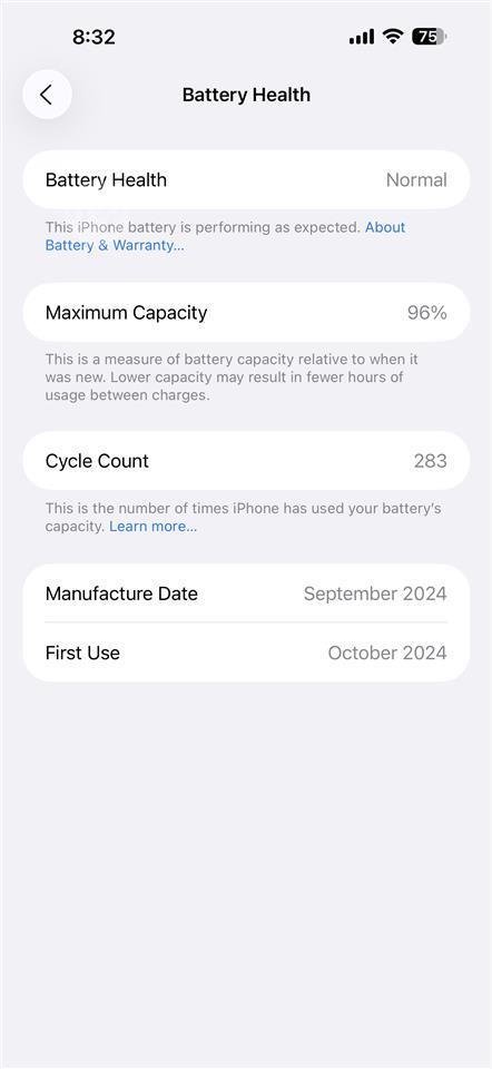 • Battery Health: 96%