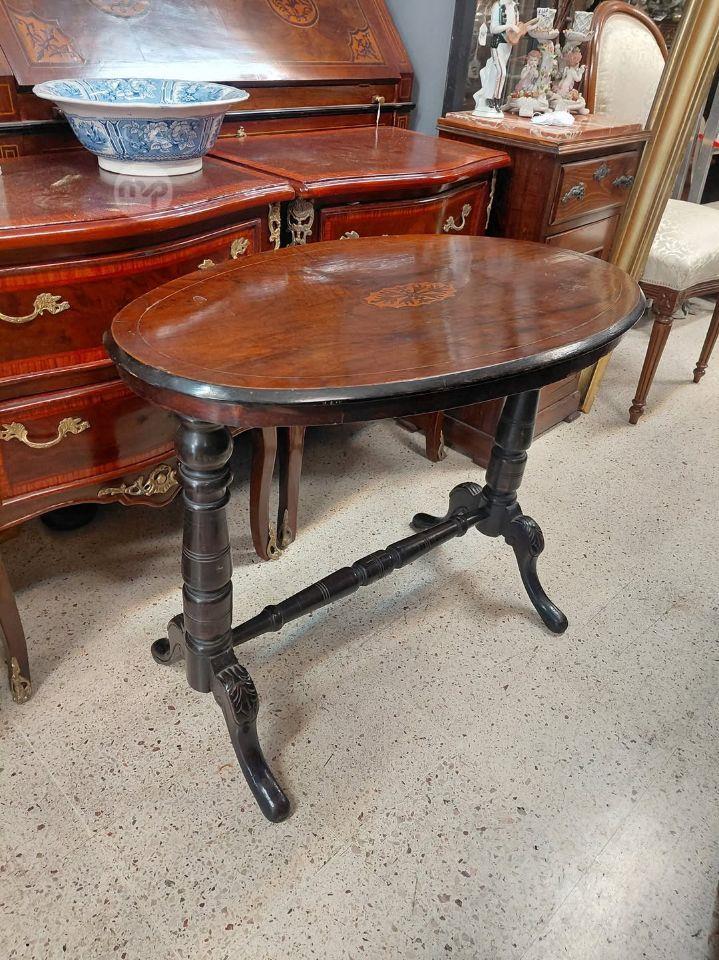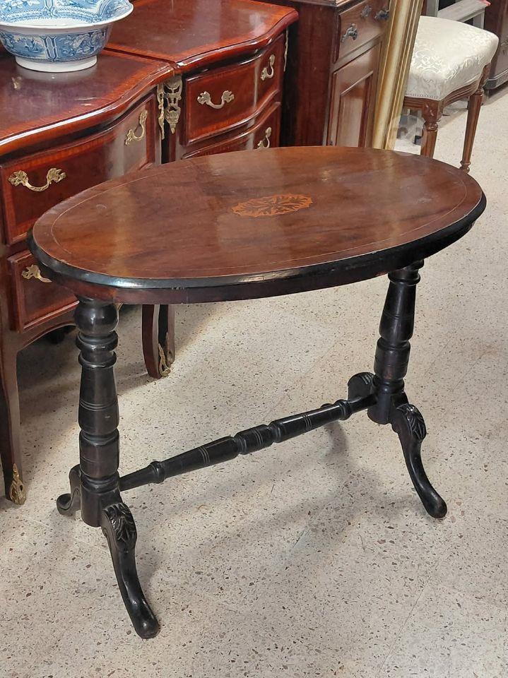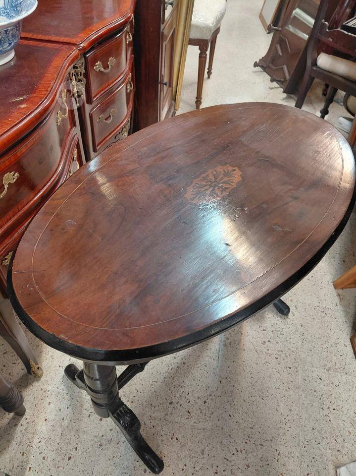 An Antique Oval shaped top Table Burr Walnut and inlay Center Table