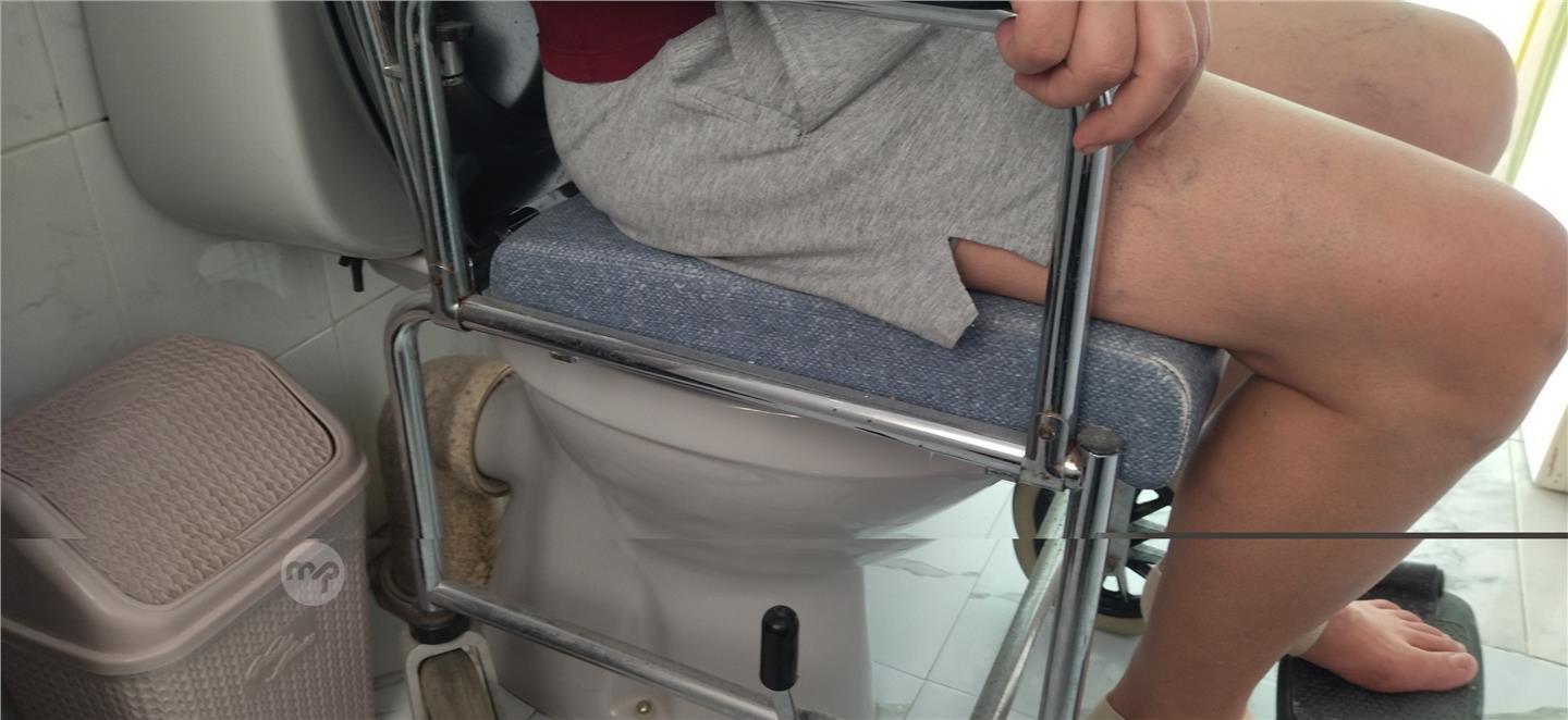 An indoor wheel chair capable of entering over toilet.