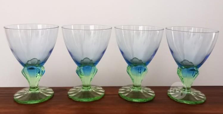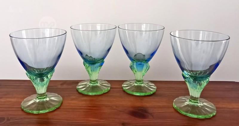SET of 4 GREEN / BLUE BORMIOLI ROCCO BAHIA GLASSES