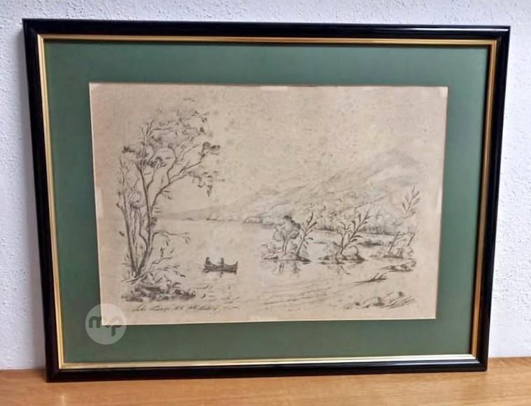 VINTAGE MONOCHROME PRINT by EDWIN GALEA - LAKE GEORGE N.Y. 19TH CENTURY