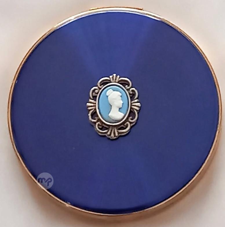 VINTAGE BLUE ENAMEL with CAMEO POWDER COMPACT (1950s/1960s)