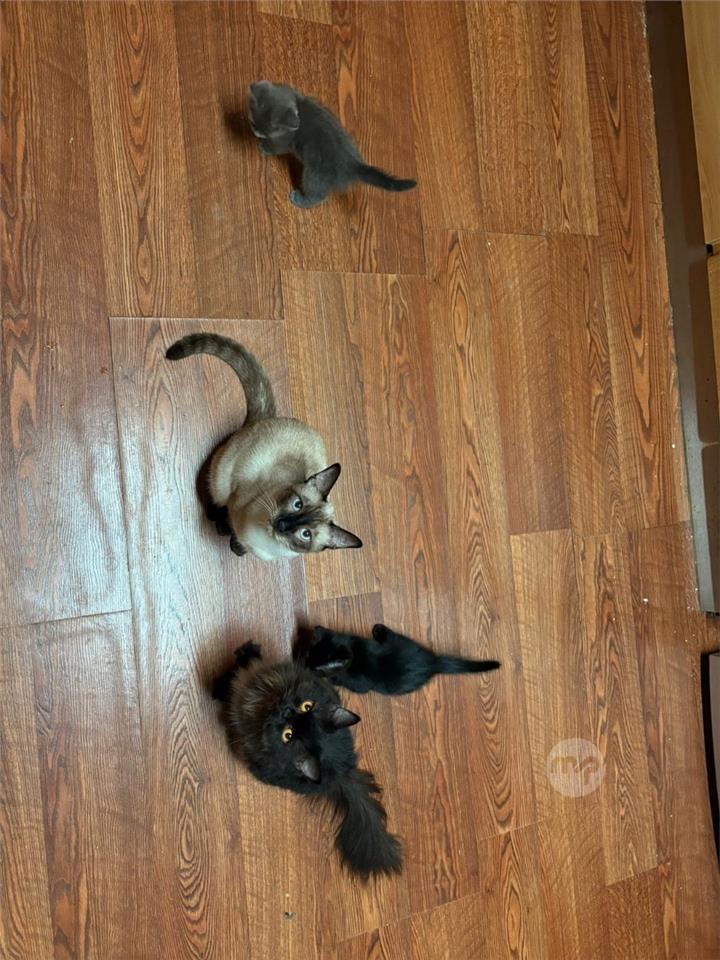 The mother is a 4-year-old Persian and the father is a 2-year-old Siamese. Both parents have gentle, affectionate personalities, and the kittens have inherited their sweet nature.