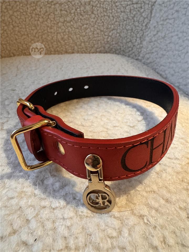 Prototype Charles & Ron red leather dog collar 40 cm (for medium sized dogs). Real Leather.