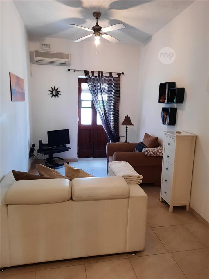 Sliema - Forming part of a residential block on 3 floors served with a lift is this 1 bedroom apartment consisting of: a dining/living room with a front balcony, a hallway which connects this room to the bathroom and kitchen leading to the bedroom on the back of the property where there is another balcony. Ceiling fans are installed in every room supplemented by an air-conditioning unit in the front room.