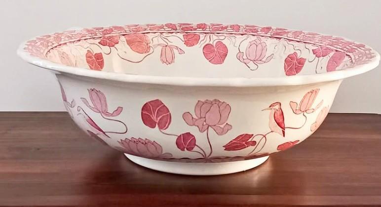 ANTIQUE GEORGE JONES & SONS CRESCENT ENGLAND WATER LILY LARGE WASH BASIN