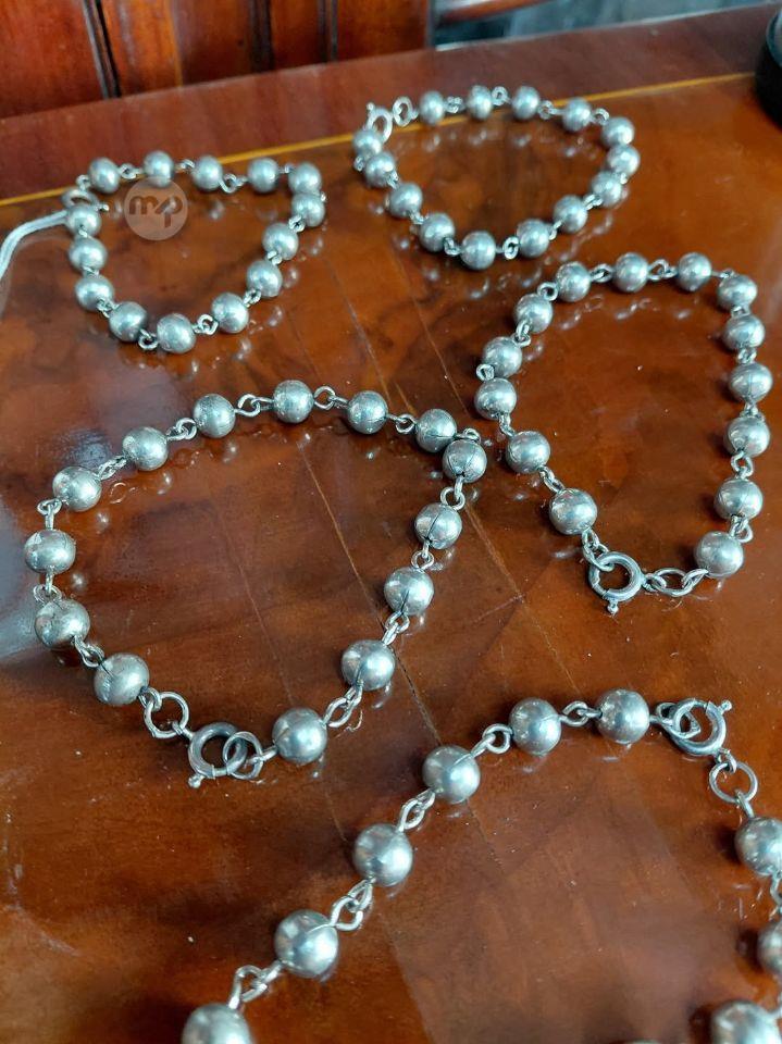 FIVE SILVER,ROUND BEADED BRACELETS. Price of 60 euros each 99456526